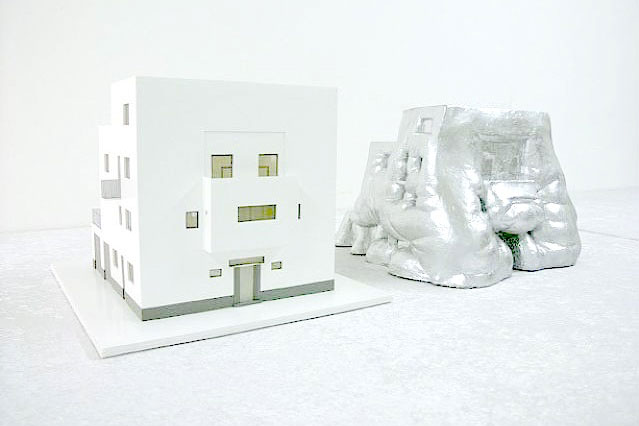The cartoon-like convertible exhibits an active anthropomorphism in which the sculpted obesity suggests an activity: The fat holds an indexical relationship to eating, suggesting that consumption constructs a kind of interior for the object. If an object can eat and swell, the object has an inside. The abject interiority of his fat sculptures and their easy presentation—eluding contemplation—are characteristics that resonate with architectural practice. Throughout his œuvre, Wurm not only metaphorically takes on architecture but often also enlists it as direct fodder. Besides his Fat House (2003), sculptures like Fat House Moller/Adolf Loos (2003), Mies van der Rohe Melting (2005), and Art Basel Fucks Documenta (2006) reference a curiously pronounced preoccupation with buildings.